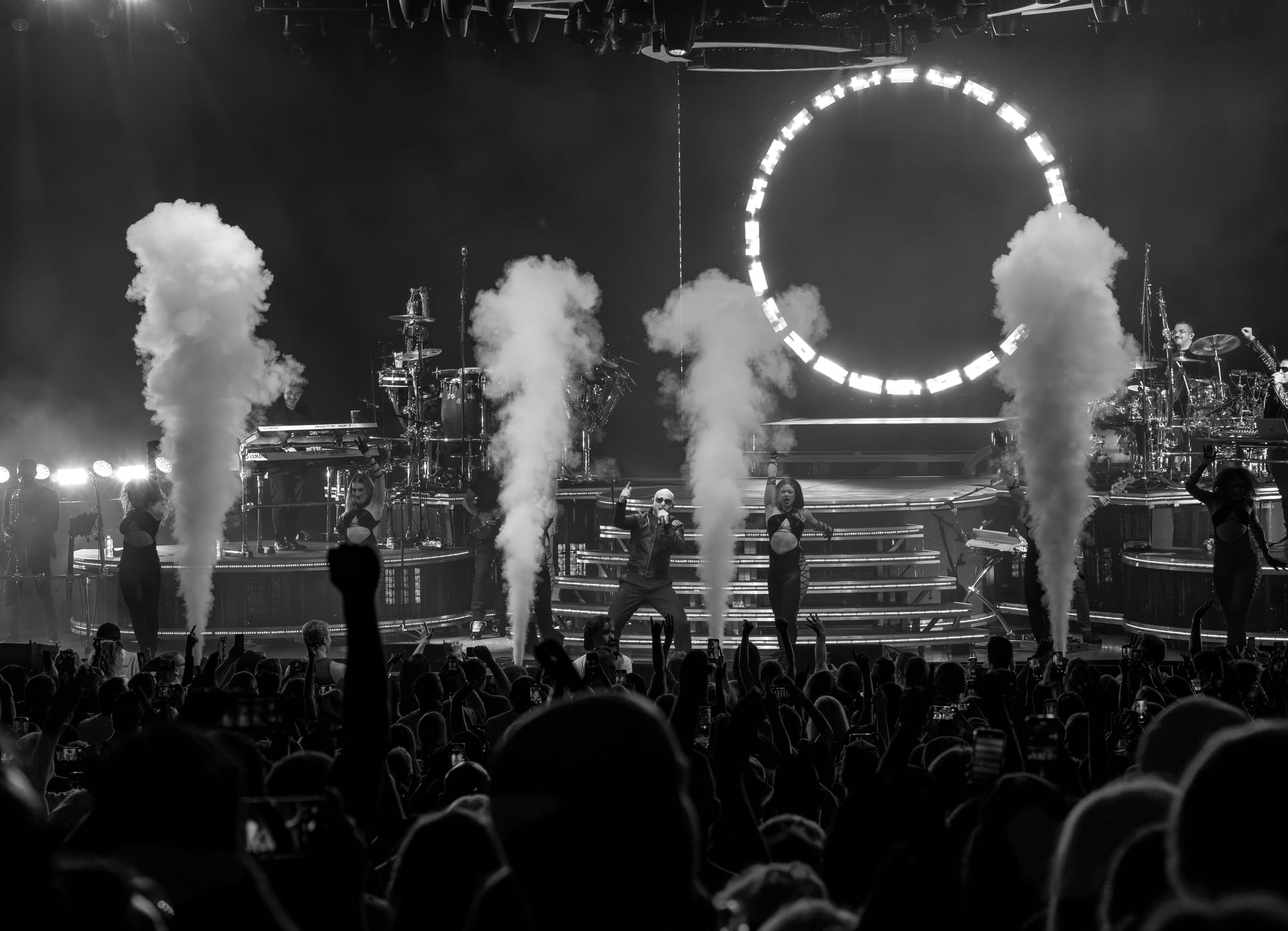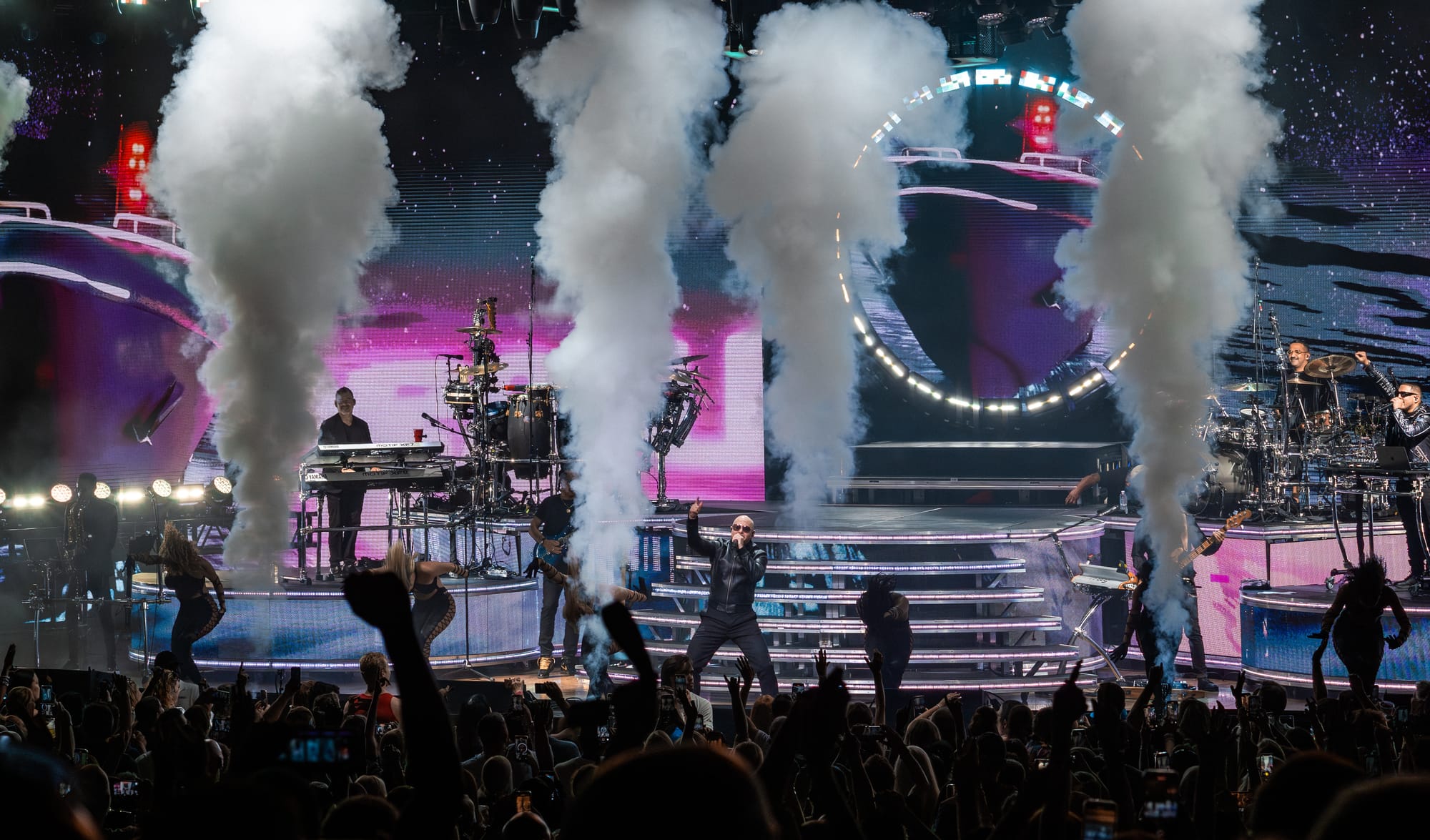 The band accompanying Pitbull deserves special mention. Their versatility and the variety of instruments on display were impressive, with each band member getting a moment to shine. The DJ’s involvement throughout the performance was also a unique touch, seamlessly blending the live band’s energy with the beats that kept the crowd hyped.