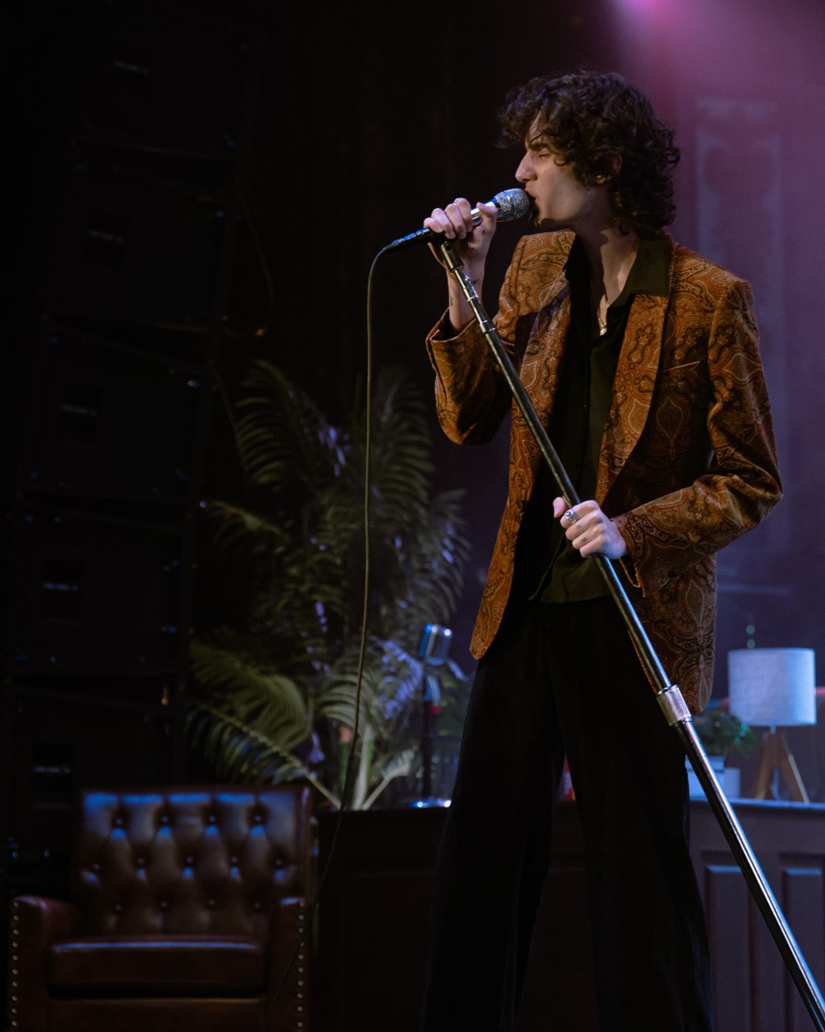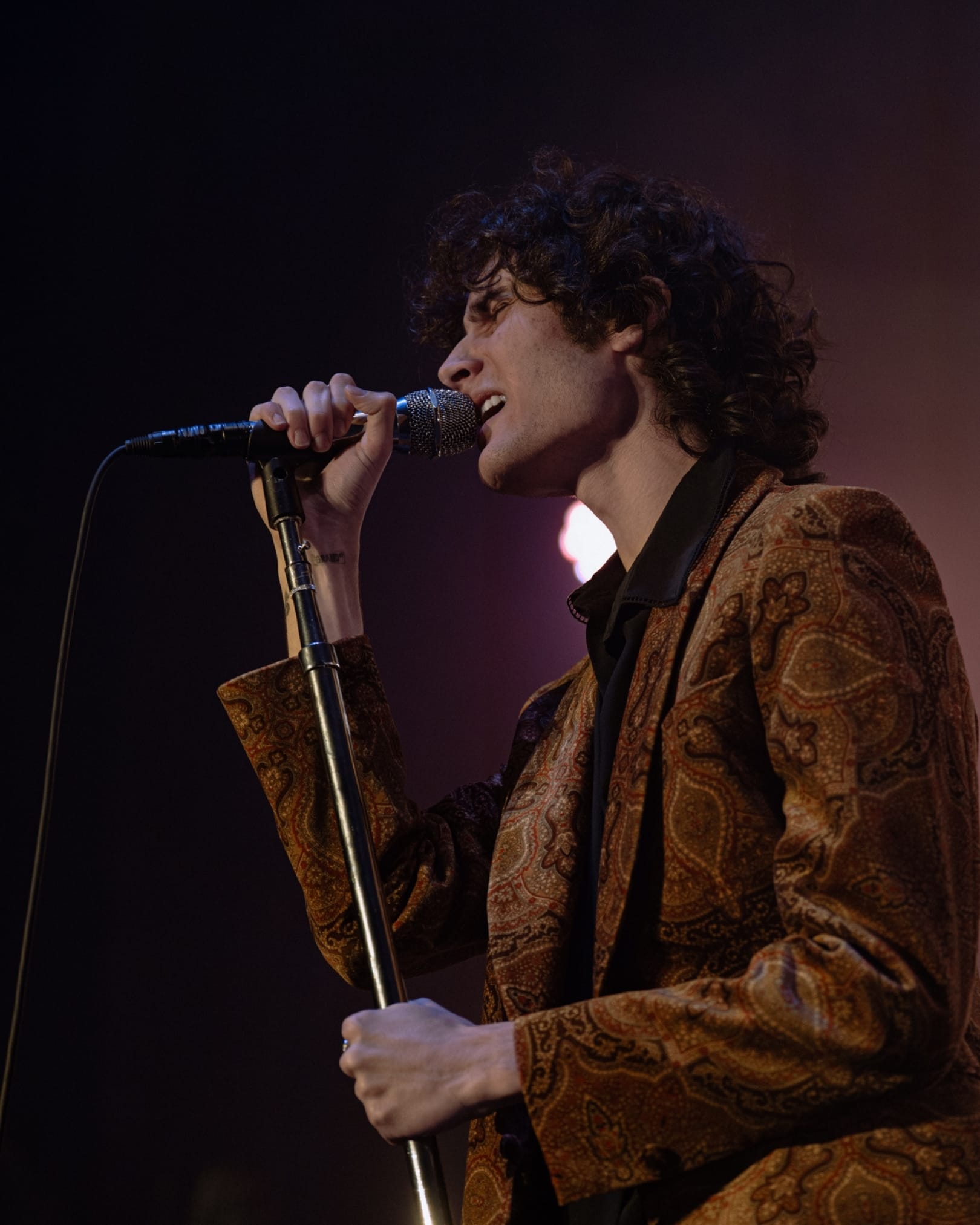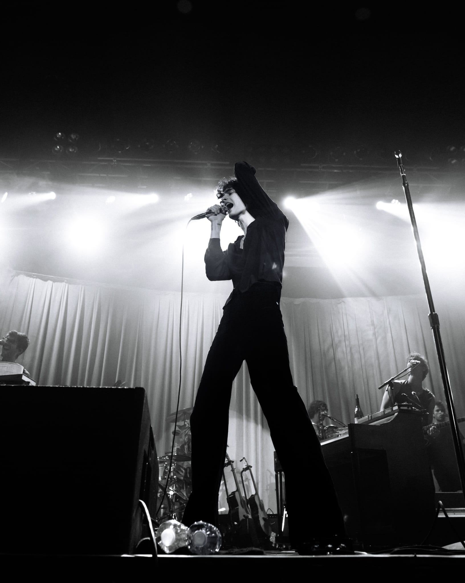 The night was full of gratitude and love. Between songs, Sombr thanked fans for being there and later said, “Thank you for loving me and choosing me.” The emotion was visible, especially during “12 to 12,” when lighting from the disco ball bounced around the room, creating a stunning, surreal atmosphere. And for “Back to Friends,” his unique mic stand setup made the performance feel like its own art piece.
