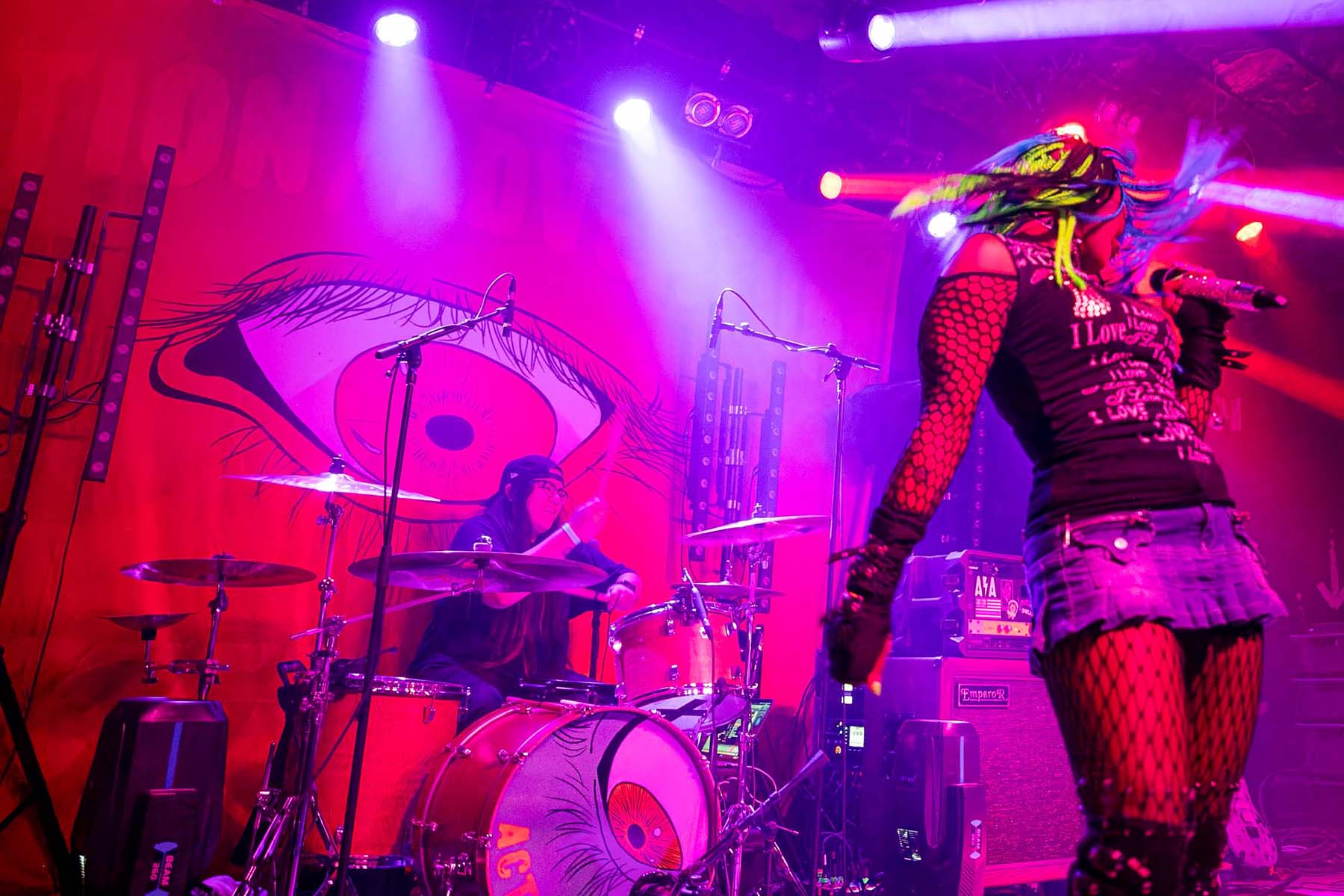 Meet Me @ The Altar was the last opener to come out. A bit ago, Téa Campbell left the band and they went from a three-piece to a duo act. My heart was saddened by this, and not getting a chance to photograph the original lineup for this band was not as fulfilling. Even down a member and having fill-ins on stage, this group gave a 110% act for the crowd. Vocalist and frontwoman Edith Victoria came out like a firecracker with her brightly neon-colored braids headbanging for every song. She knows how to make her presence known and it was felt.