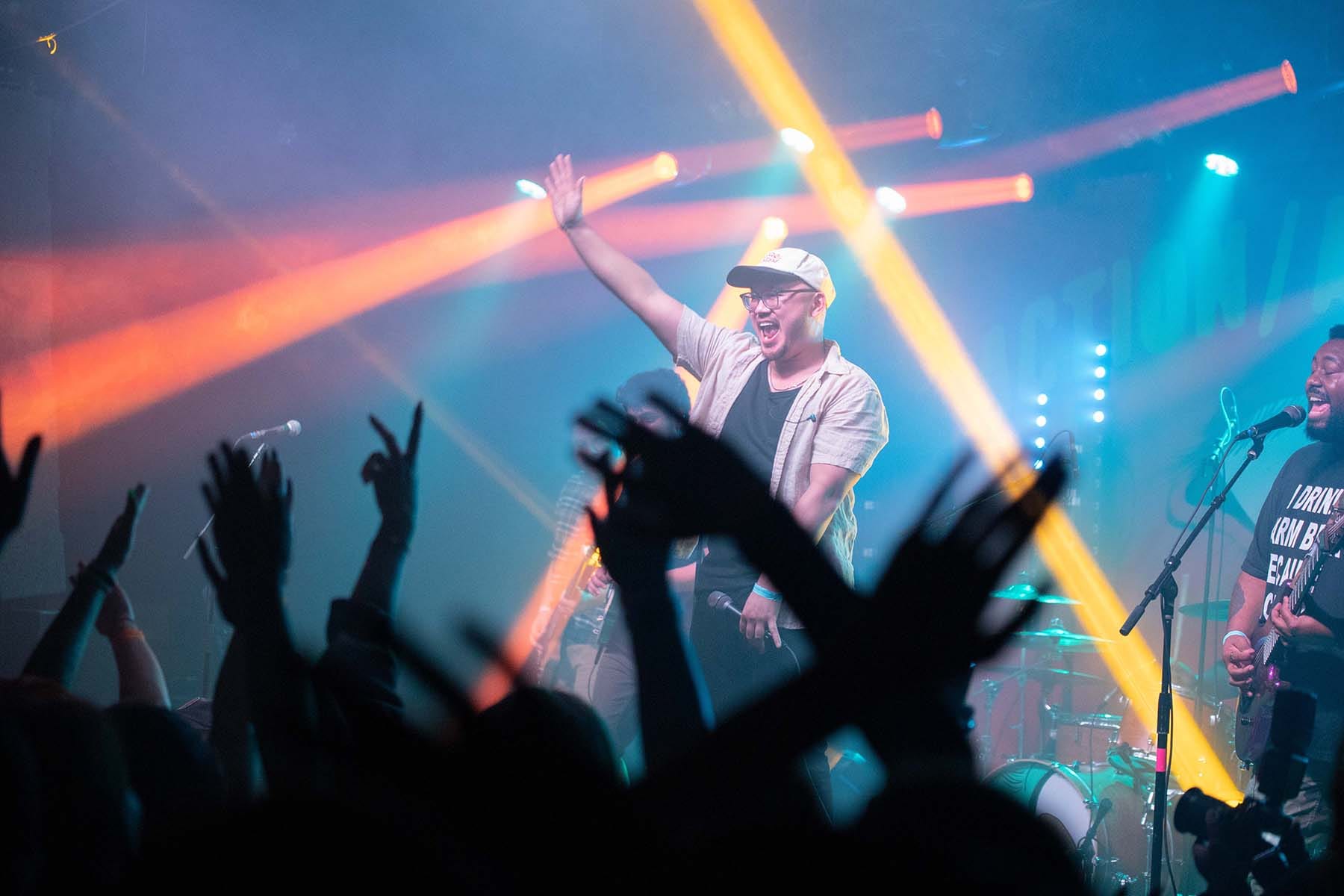 The entire room then went dark and erupted in cheers, everyone knew that it was time for the headliner to get the room moving. Backlights flashed as they took the stage one by one and the music kicked in — but then there were technical difficulties which resulted in not one but two restarts of the intro. Third time’s the charm and the entire place was shaking from the amount of energy.